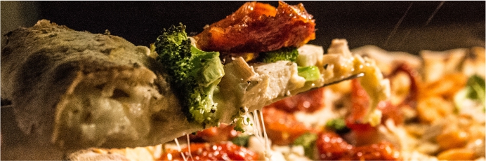 Molho de tomate, brócolis, champignon, milho, tomates secos, ricota e orégano.