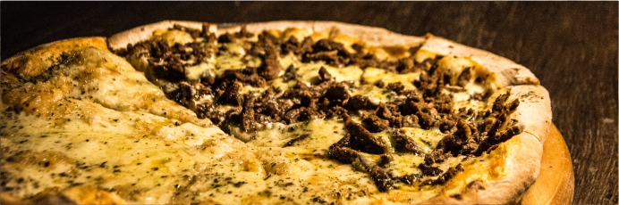 Molho de tomate, mussarela, filé, ovos, tempero sírio, azeitonase zaatar.